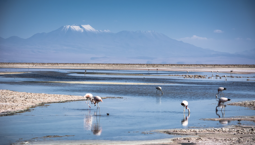 Dèlután folytatjuk utunkat a Chaxa lagúnához, amely egy látványos szépségű terület, és több víztükörre oszlik. Hatalmas számú flamingó és más madárfaj, mint például a nagy és kis parinák, otthonául szolgál. Végül, mielőtt visszatérnénk, miközben a táj lenyűgöző kilátást nyújt a Licancabur és Láscar vulkánokra, meglátogatjuk Toconaót, mely tipikus gyarmati építészetével, harangtornyával és az első nemzeti műemléknek nyilvánított San Lucas-templomával vár minket.