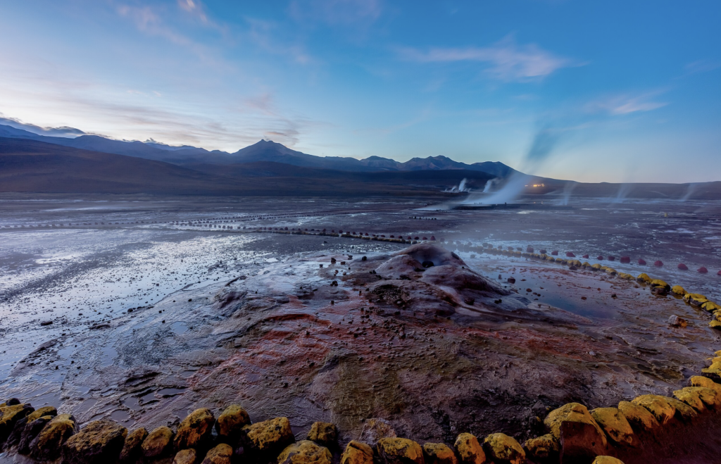 Hajnali indulást követően a Tatio-gejzírek felé vesszük az irányt. A magasfennsíkra (altiplano) vezető utunk a hajnali órákban kezdődik, hogy elérjük a világ egyik legjelentősebb geotermikus mezőjét, a Tatio-gejzíreket. A gőz- és vízkibocsátásokkal körülvéve élvezzük az Andok szépségét, és ebben a természeti környezetben egy bőséges reggelit kínálunk nektek.