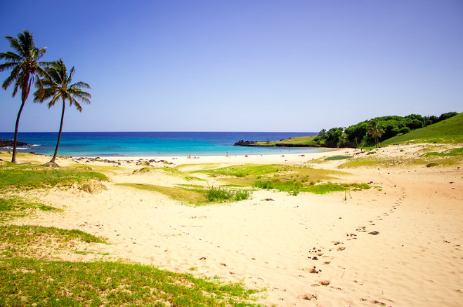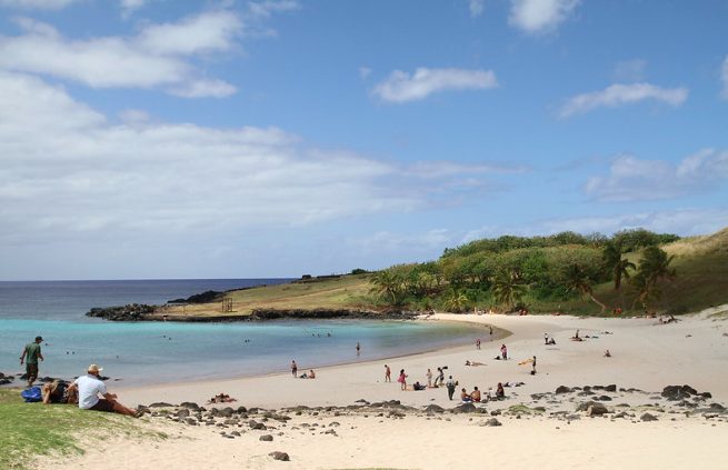 Anakena Beach: Lazítunk a gyönyörű fehér homokos óceánparton, csak mert nem minden nap tudunk megfürdeni az óceán kellős közepén. Pálmafák alatt pihenünk miközben hallgatjuk az óceán hullámjait és csodáljuk az Ahu Nau Nau moai-csoportot.