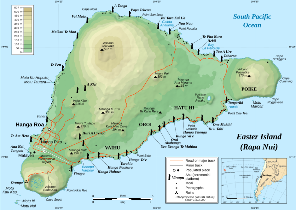 A Húsvét-sziget Polinézia legkeletibb pontja. Polinézia a Csendes-óceán közéspő része kb. 1000 kisebb-nagyobb szigettel. Nagyobbak: Hawaii, Új-Zéland, Szamoa, Fidzsi-szigetek, Tahiti és Húsvét sziget.